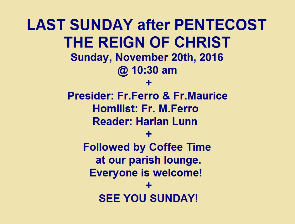 NOV 20 Hispanic Mass @ 2 pm Parroquia San Esteban